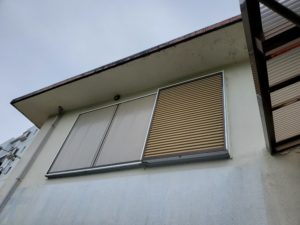 ガラス 一般住宅 割れた硝子 新しい硝子 雨戸 既存のレール、戸袋を利用して雨戸だけ新しいものと入れ替え工事しています。 古い雨戸 新しい雨戸 浴室折戸 一般住宅 古いドア 新しいドア アルミフェンス 集合住宅 アルミ塀 アルミ塀